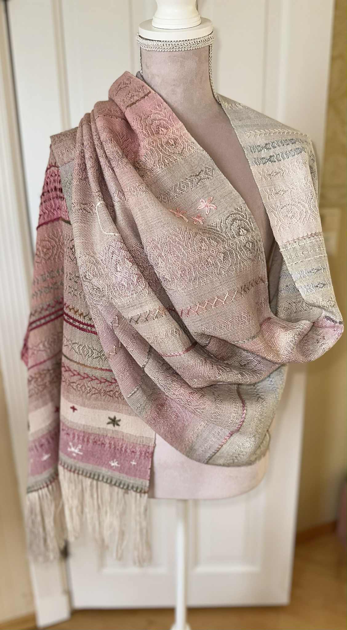 Sjalet vil bli auksjonert bort, så følg med på facebook: vidvandrer håndlagd chatter